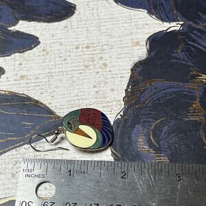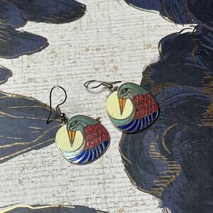 Vintage Silver Tone Enamel Cloisonne Bird Earrings