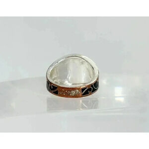 Vintage Silver Tone Enamel Swirl Design Tapered Retro Modernist Ring - Size 6.75