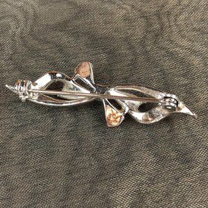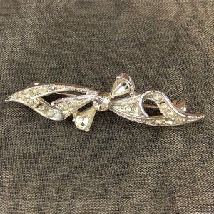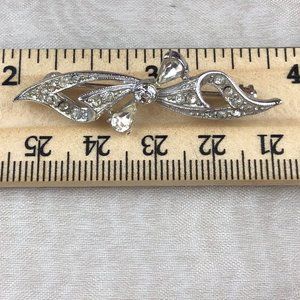 Vintage Silver Tone Faux Diamond Bow Brooch Glamcore Sparkly Old Money Quiet Lux