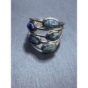 Vintage Silver Tone Five Stone Lapis Ring SZ 8