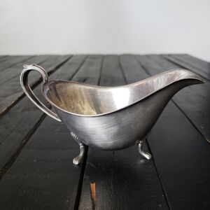Vintage Silver Tone Footed Pouring Dish Syrup Gravy Dinner Dining Serveware