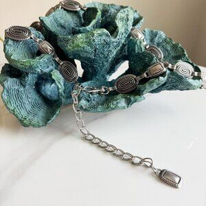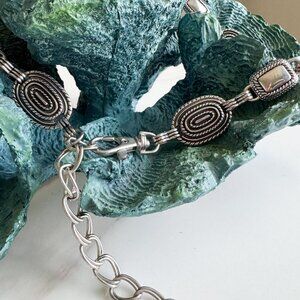 Vintage Silver Tone Geometric Chain Belt Adjustable Womens