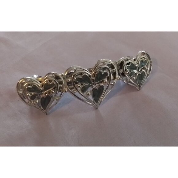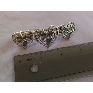 Vintage Silver Tone Heart Shaped Hair Barrette Clip