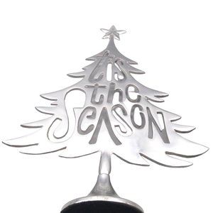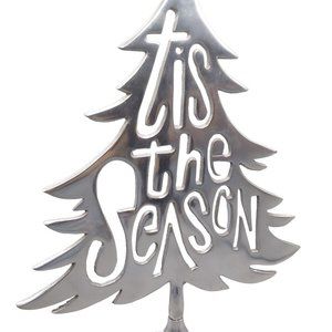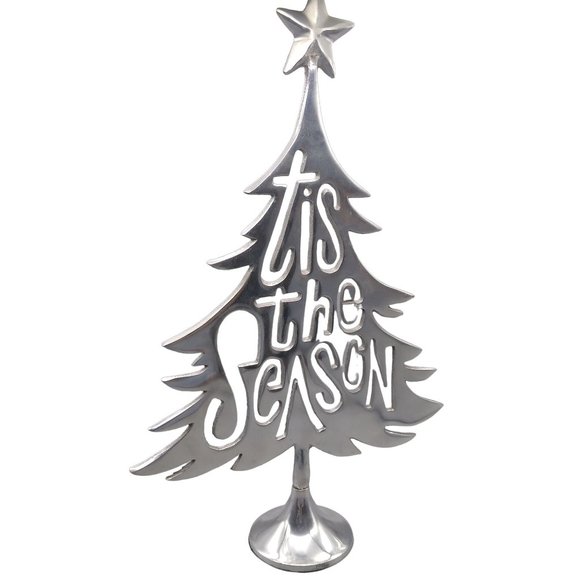 Vintage Silver Tone Holiday Tree with Cutout Tis the Season, Chic Seasons Greetings Christmas Decor