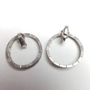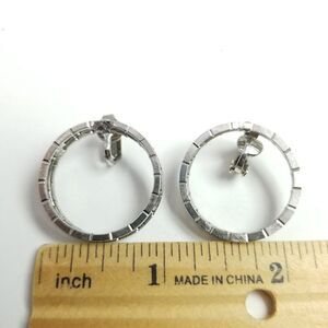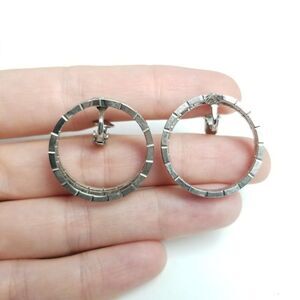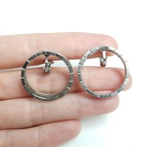 Vintage Silver Tone Hoop Clip On Earrings, Fun Retro Design, Estate