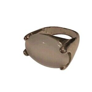 Vintage Silver Tone Huge Statement Gray Oval Cats Eye Fashion Ring Sz 7.75