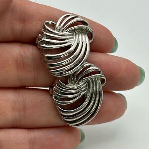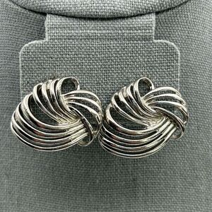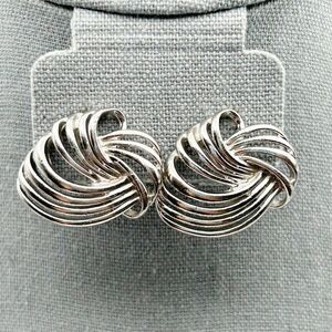 Vintage Silver Tone Knot Design Textured Wavy Clip-On Large Earrings Chic Bold