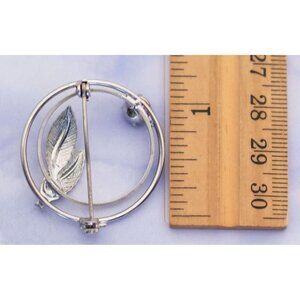 Vintage Silver Tone Leaf Circle Brooch