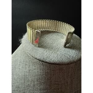 This Vintage Silver Tone Mesh Bangle Bracelet is a stylish addition to any jewelry collection. The cuff style and stackable design make it versatile for both casual and minimalist looks.