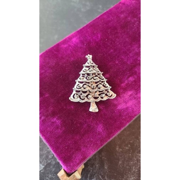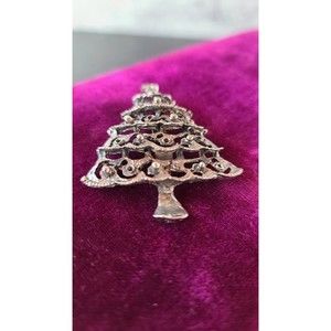 Vintage Silver Tone Metal Christmas Tree Brooch