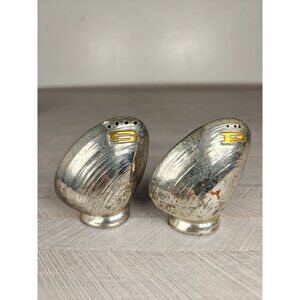 Vintage Silver Tone Metal Clam Shell Salt & Pepper Shakers MCM Retro