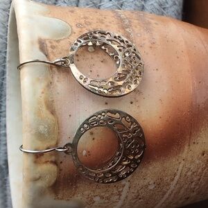 Vintage Silver Tone Metal Hollow Scroll 1 Inch Drop Earrings