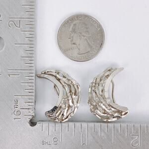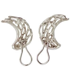 Vintage Silver Tone Modernist Abstract Openwork Crescent Moon Clip-On Earrings