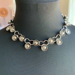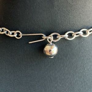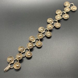 Vintage Silver Tone Modernist Studio Bubble Circle Geometric Biker Chain Link Necklace and Bracelet Set