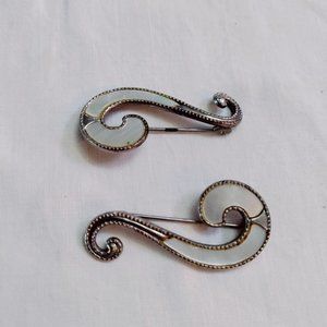Vintage Silver Tone Mother Of Pearl Insert Swirl Brooch Pin Set Of 2 Antique