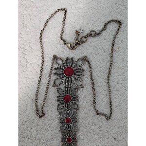 Vintage Silver Tone Necklace with Red Cabochon Accents