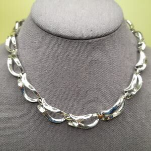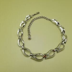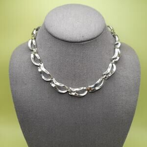 Vintage Silver Tone Oval Link Choker Necklace, 16 Inches, 1950s