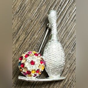 Very stylish vintage brooch for the bowling enthusiasts. Excellent condition.