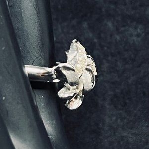 Vintage Silver Tone Rhinestone Flower Adjustable Ring. It is not signed.