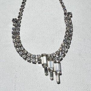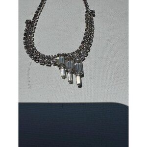 Vintage Silver Tone Rhinestone Necklace Estate 14.5 inches Small Size