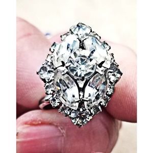 Vintage Silver Tone Rhinestone Ring