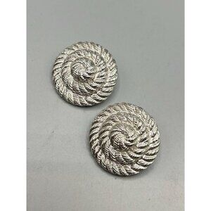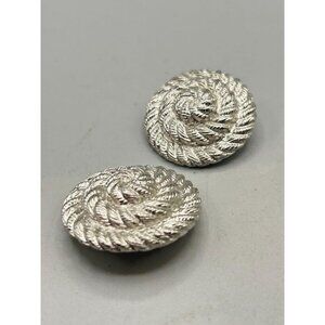 Vintage Silver Tone Rope Swirl Twisted Clip On Earrings UNSIGNED Anne Klein
