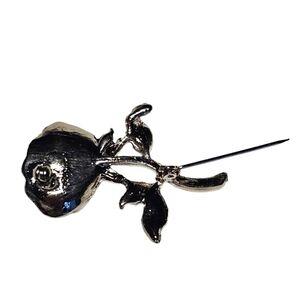 Vintage Silver Tone Rose Flower white Faux Pearl Pin Brooch