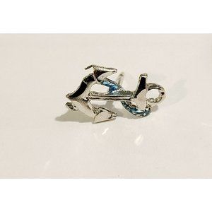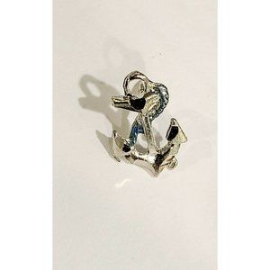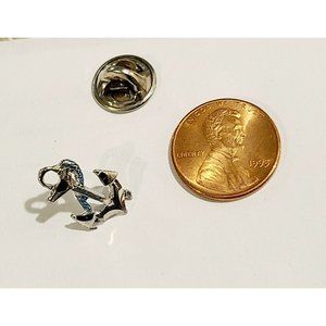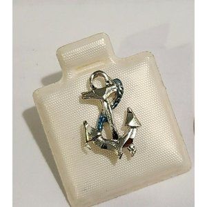 Vintage Silver Tone Ship's Anchor w/ Blue Rope Tie Lapel Brooch Pin. Nautical
