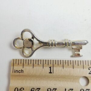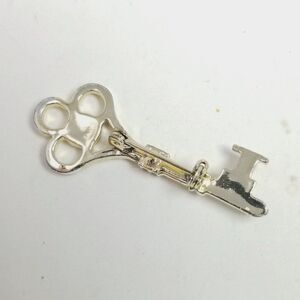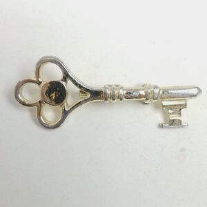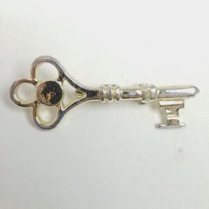 Vintage Silver Tone Skeleton Key Shape Brooch, Antique Style Lapel Pin, Estate