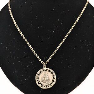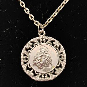 Vintage Silver Tone St Christopher Pendant Necklace Unisex Intricate Filigree