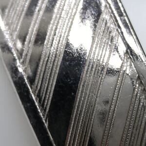 Vintage Silver Tone Stripe Textured Hinged Bracelet, Tongue Clasp, 7 Inches