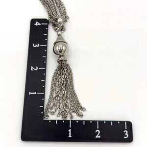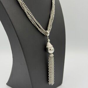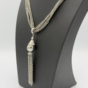 Vintage Silver Tone Tassel Necklace Fringe Pendant