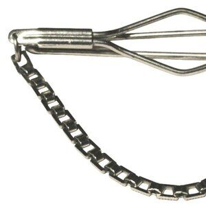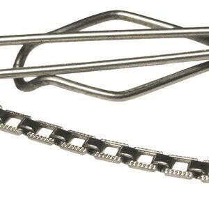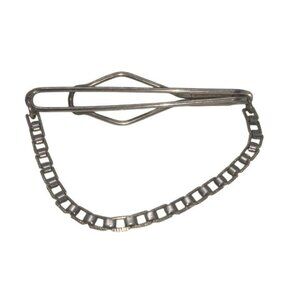 This elegant vintage tie clip, with a distinctive chain design, adds a refined touch to formal attire. Its durable silver tone construction ensures longevity while maintaining a timeless aesthetic, ideal for professional settings.