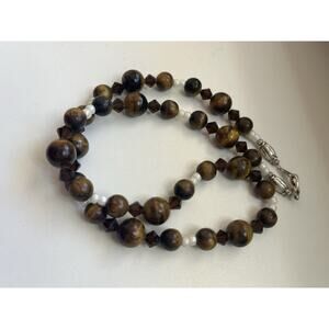 Vintage Silver Tone Tigers Eye Beaded Necklace 18”