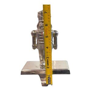 Vintage Silver Tone Toy Soldier Nutcracker Stocking Holder Heavy Weighted Base