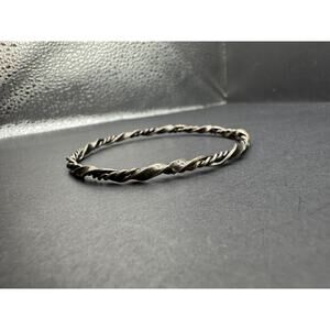 Vintage Silver Tone Twisted Cable Wire Design Bangle Bracelet Sz 7.5"