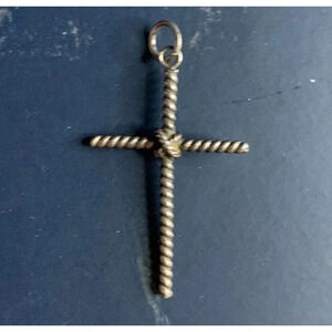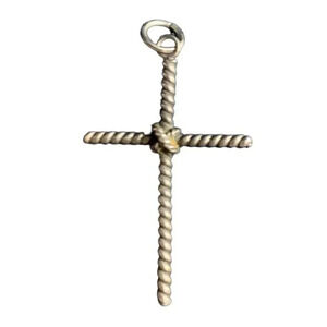 Vintage Silver Tone Twisted Cross Crucifix Necklace Pendant Christian Religious