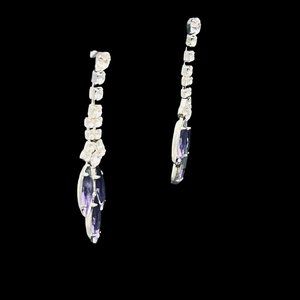 Vintage Silver Tone With Purple And Clear Glass Rhinestones Pierced Earrings