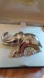 This vintage silver tone and crystal elephant brooch is 2 inches in width and 1.5 inches in height. It is in the original Montgomery Ward box, which is also in excellent condition. The brooch is made of silver tone metal and features a large elephant with crystals. It is in fantastic shape and very beautiful.