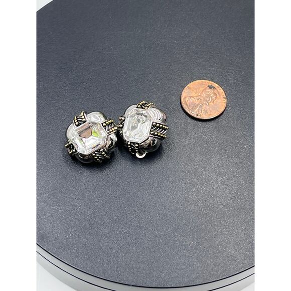 Vintage Silver Tone and Gold Tone Large Rhinestone Button Clip On Earrings