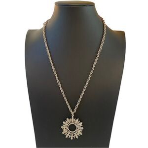 Vintage Silver Toned Faux Turquoise Circular Pendant on Rope Chain
