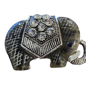 Vintage Silver Toned Rhinestone Elephant Brooch with Blue Stone Eye