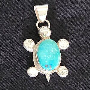 Vintage Silver & Turquoise Turtle Pendant