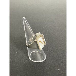 Vintage Silver & White Stone Ring With Rhinestones Embellishment