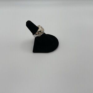 Vintage Silver and Beige enamel ring