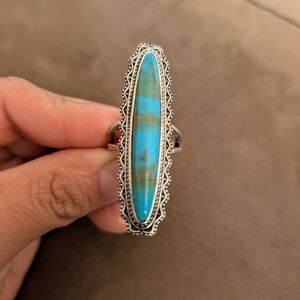 This exquisite Vintage ring showcases a stunning blue stone set in polished silver, embodying timeless elegance. The intricate detailing and craftsmanship highlight the brand's dedication to quality and style. Perfect for those who appreciate classic jewelry with a modern twist, this piece is a standout addition to any collection.