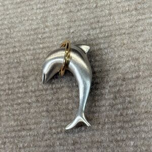 Vintage Silver and Gold Tone LR Dolphin Jump Gold Ring Hoop Brooch Pin