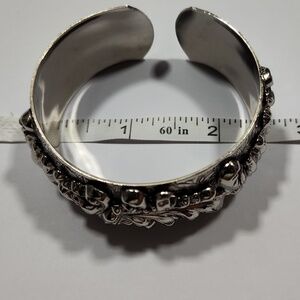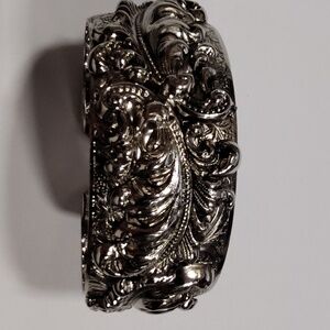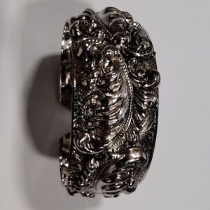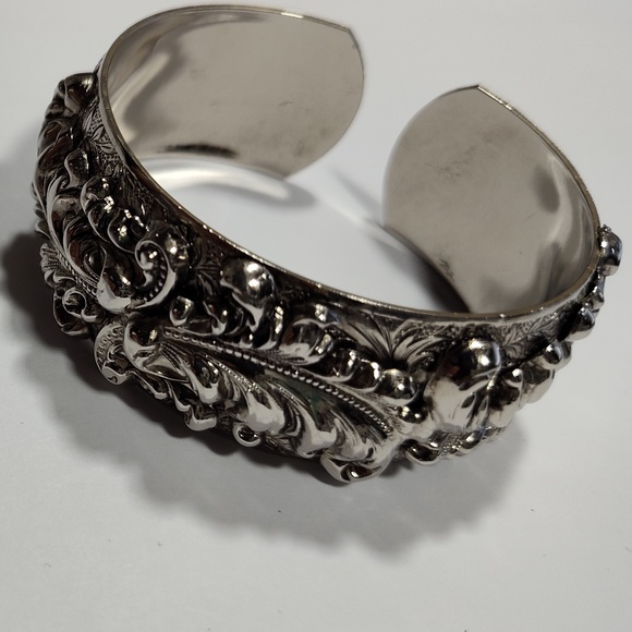 Vintage Silver tone Art Nouveau Wide Ornate Cuff Bracelet Rare Find