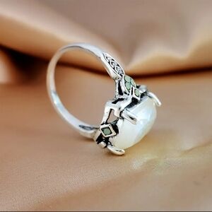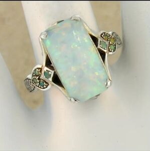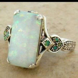 NWT beautiful vintage looking square simulated opal ring with gorgeous green rhinestone embellishments
