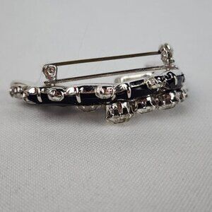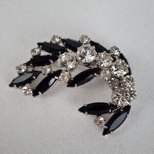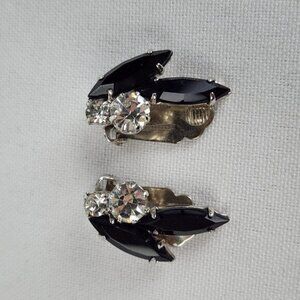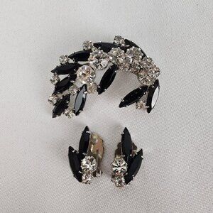 Vintage Silver&Black Rhinestone Brooch&Earrings